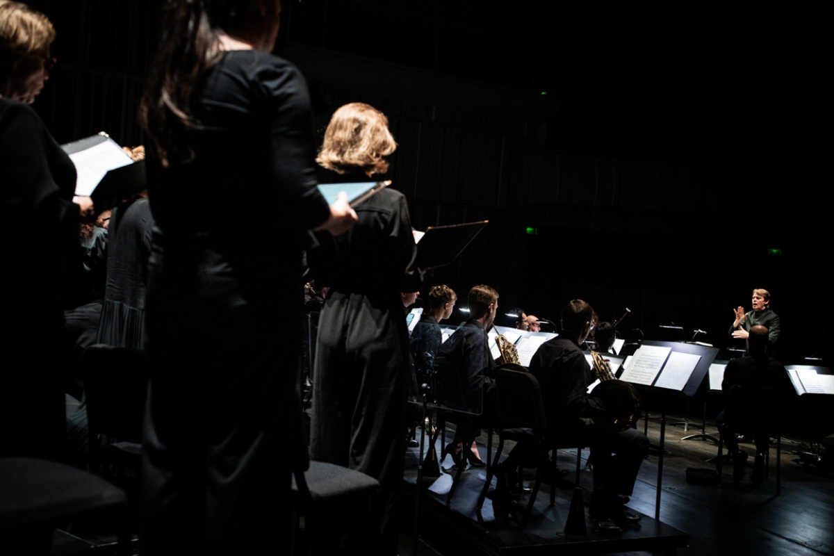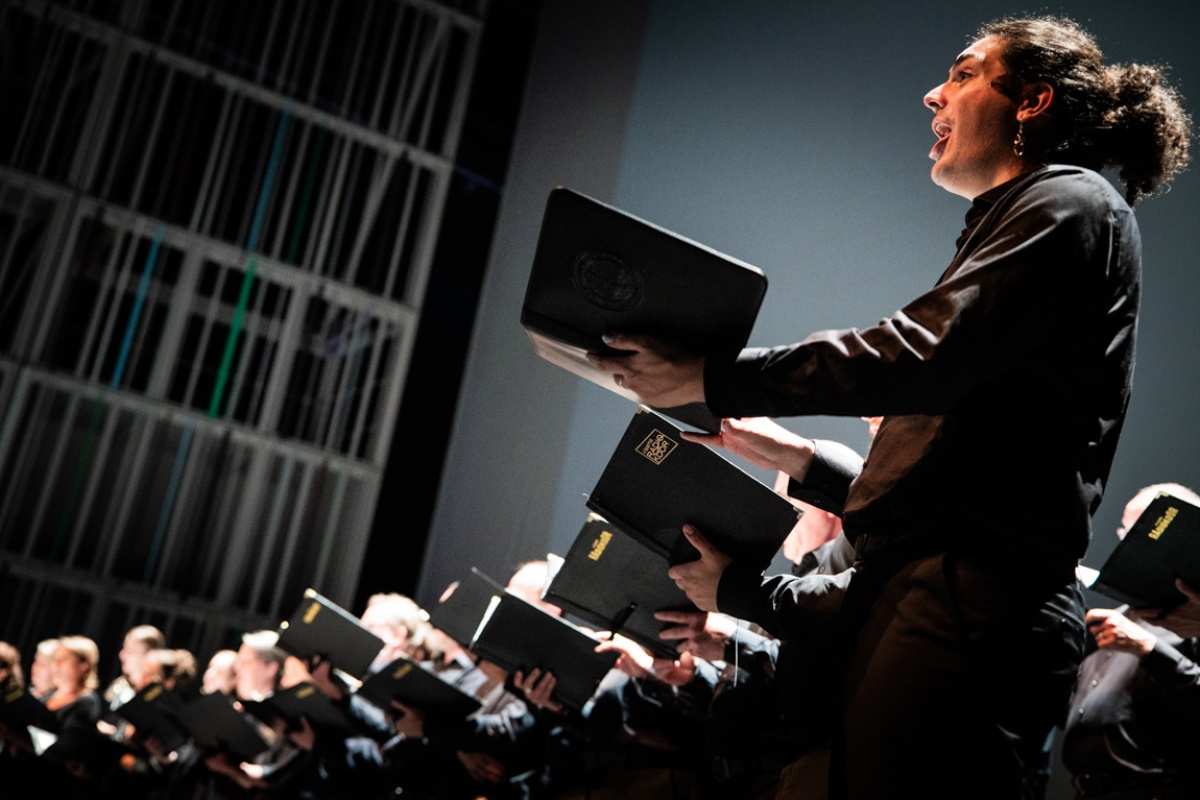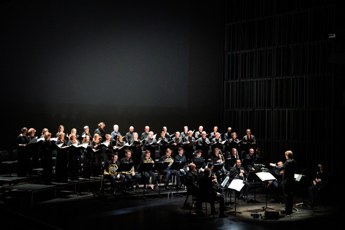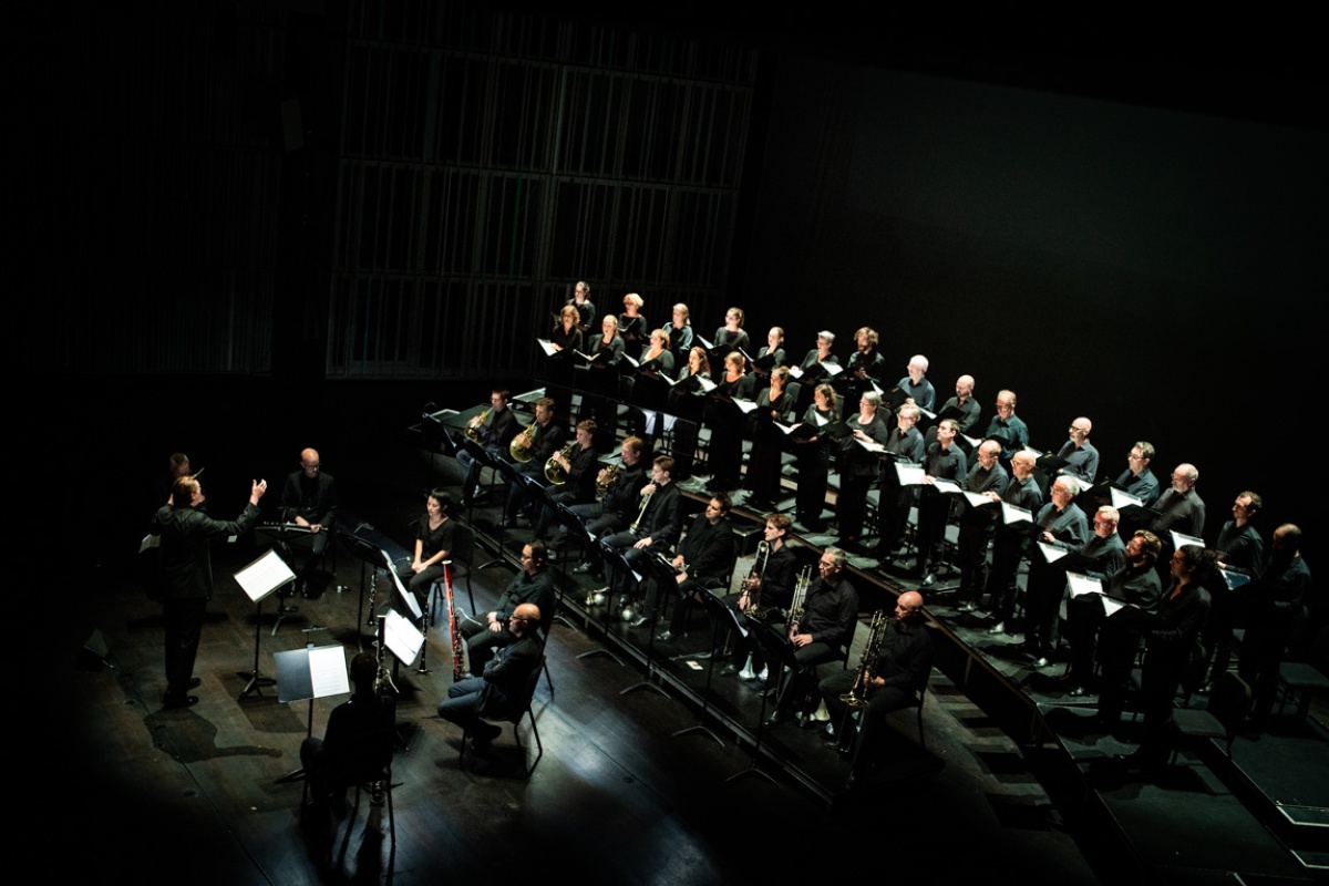Points of view and fragments of these conversations are part of the new text that Maud Vanhauwaert wrote. On the music stands is new work by Frederik Neyrinck, alongside the Mass in E minor by the deeply religious Anton Bruckner, who was born 200 years ago. Bruckner wrote the mass, his first great masterpiece, for the special line-up of an eight-part mixed choir and fifteen wind instruments.